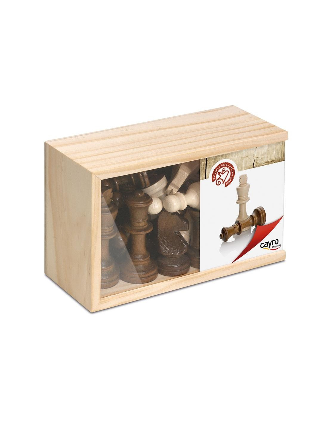 Juego de figuras de ajedrez de madera (altura del rey 8,89 cm) en una práctica caja transparente.