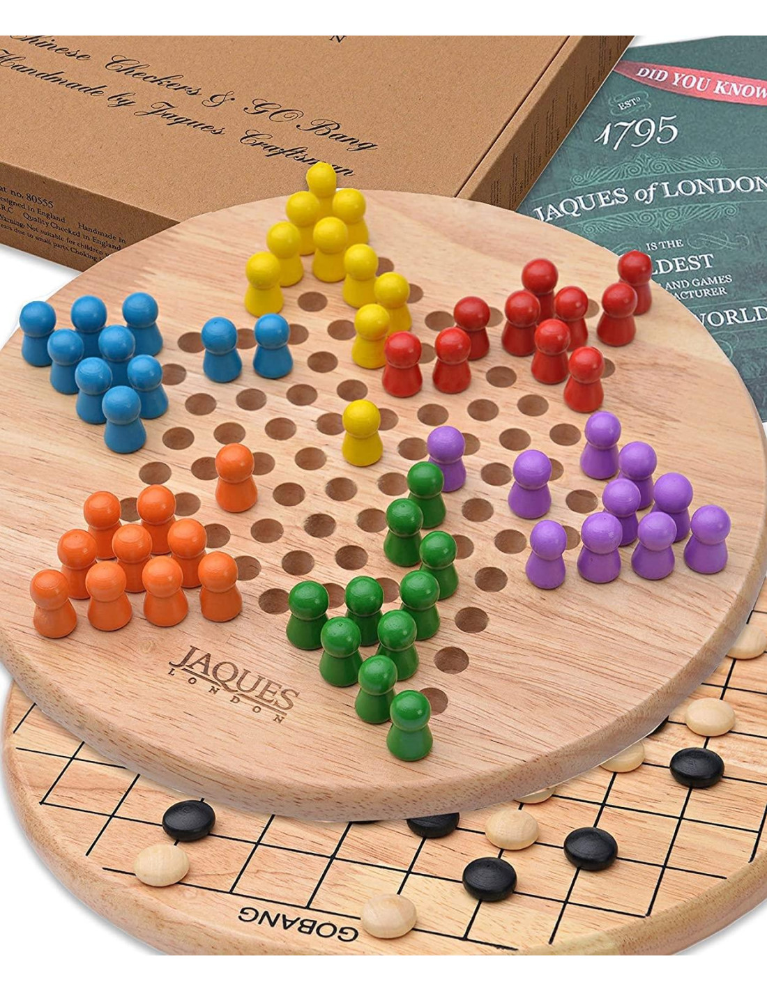 2 Juegos en 1 : Damas Chinas y Solitario, dos emocionantes juegos fabricados en madera FSC 100% que provienen de bosques gestionados de manera responsable y con ausencia de plasticos.