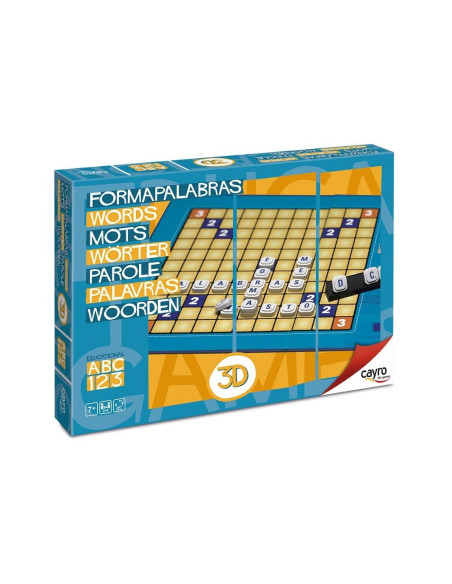 En el Formapalabras 3D debes usar tus fichas con letras para formar palabras y anotar puntos según las letras y casillas que utilices. Además, en esta versión 3D puedes volver a puntuar con palabras ya formadas en el tablero, solo cambiando alguna de sus letras.