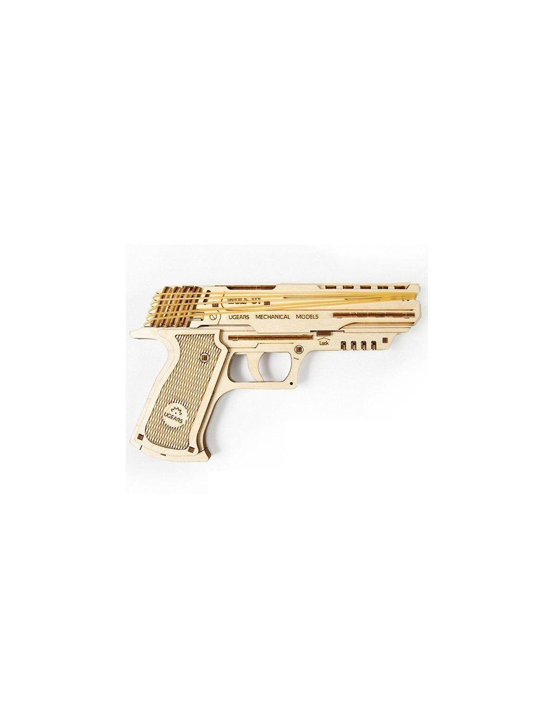 Pistola Wolf-01 de Ugears - modelo mecánico de madera para montar
