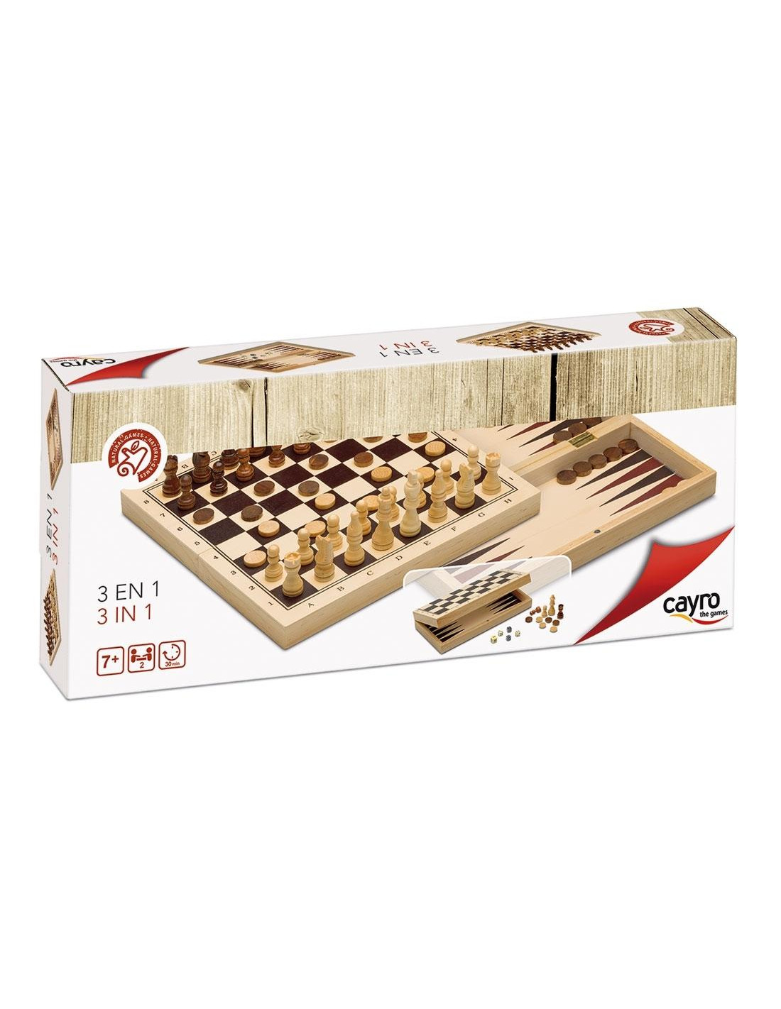 El ajedrez, las damas y el backgammon; los tres clásicos de la estrategia; Te los presentamos en madera para que disfrutes de su calidez mientras juegas. Edad: 7-99
