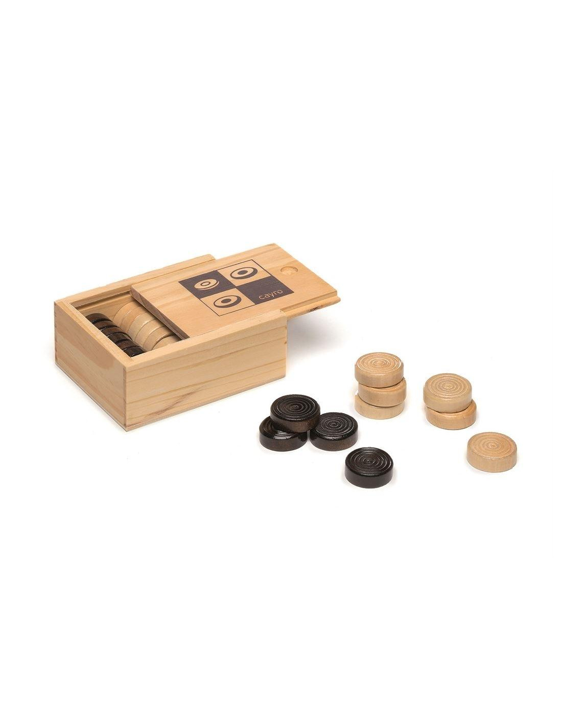 Juego de 24 fichas para las damas en dos colores de 2.5 cm de diámetro por 0.8 cm de espesor. Están fabricadas en madera y van dentro de una caja también de madera y barniz mate. Presentado plastificado con lámina de polipropileno totalmente reciclable.