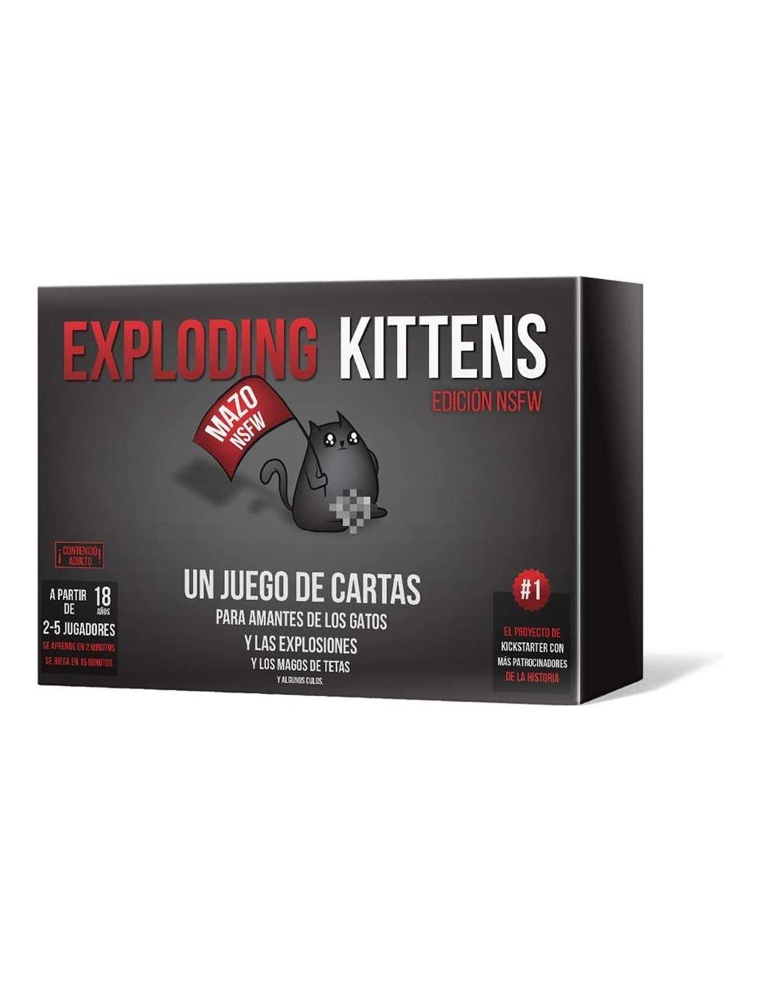 Se trata de una versión gatuna de la ruleta rusa con un gran componente estratégico. Los jugadores van robando cartas hasta que a alguien le sale un Exploding Kitten. Cuando esto sucede, esa persona muere y queda eliminada de la partida. El resto de cartas de la baraja sirven para cambiar de lugar, mitigar o evitar a los Exploding Kittens.