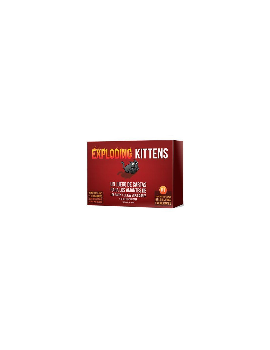 Se trata de una versión gatuna de la ruleta rusa con un gran componente estratégico. Los jugadores van robando cartas hasta que a alguien le sale un Exploding Kitten. Cuando esto sucede, esa persona muere y queda eliminada de la partida (a no ser que tenga una carta de Desactivación, que permite desactivar al Exploding Kitten con armas como punteros láser, friegas de barriga o bocatas de menta gatuna). El resto de las cartas de la baraja sirven para cambiar de lugar, mitigar o evitar a los Exploding Kittens.