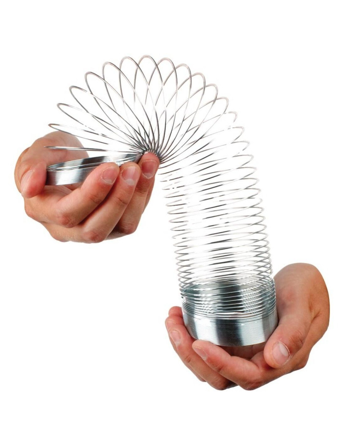 Comentario Un muelle en espiral que se puede hacer caer de una mano a otra o ir bajando por las escaleras. Se suministra en dos colores surtidos, plata y bronce. Características: Diámetro de 7 cm,