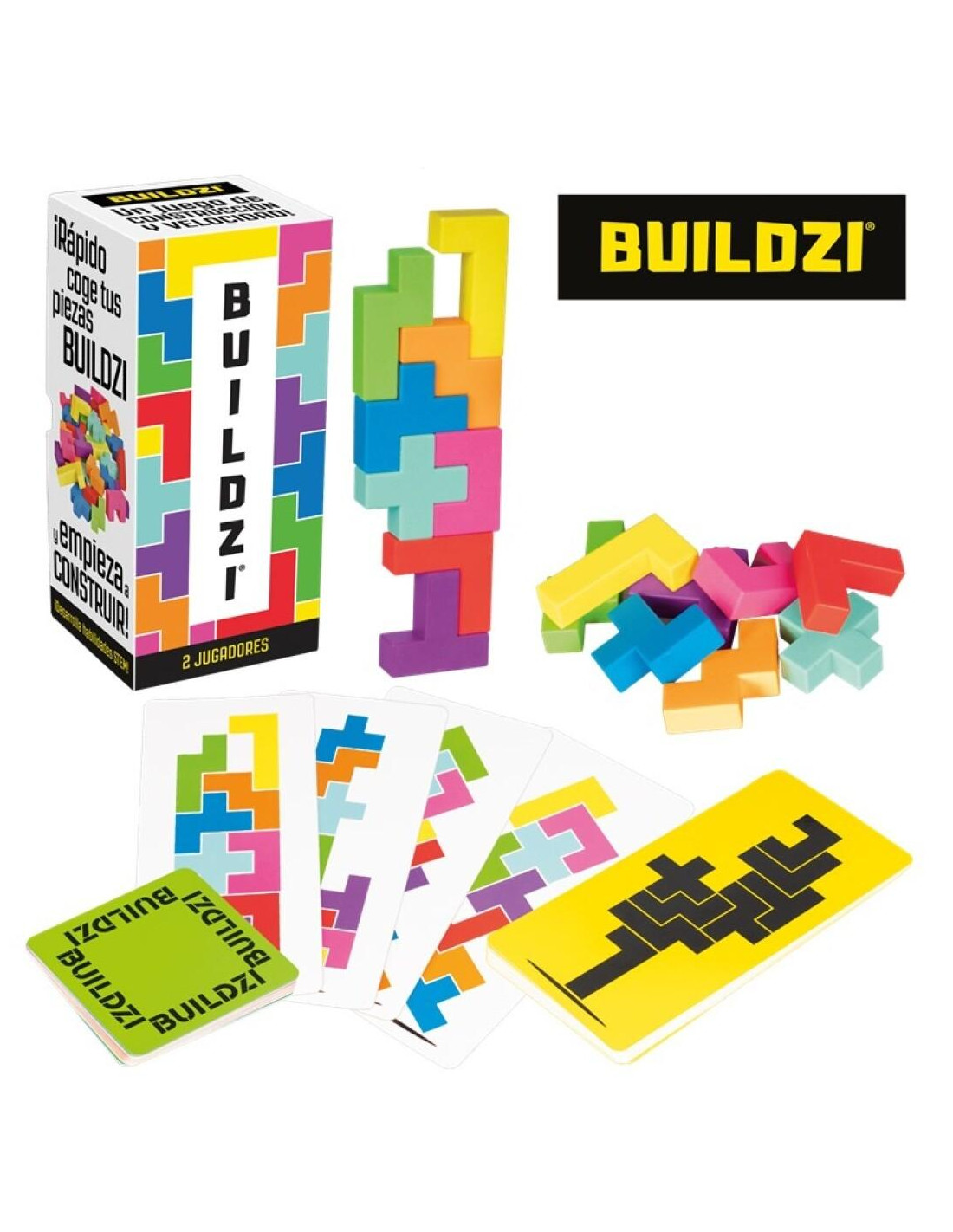 Construye tu torre y sé el más rápido para ganar pero, ¡cuidado no se derrumbe! Hay muchas formas de jugar a Buildzi, con sus tarjetas de torre reversibles o con sus tarjetas de bloque; cooperativo o competitivo. ¡Descubre qué forma te gusta más!